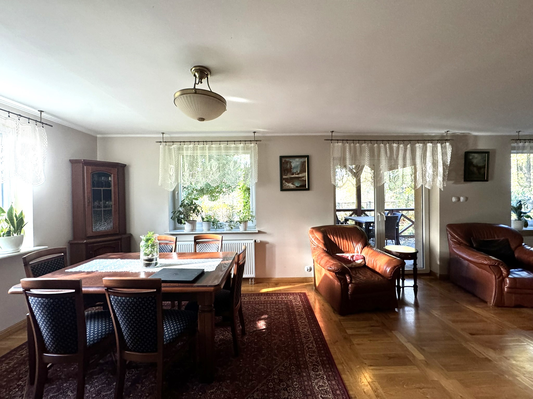Powierzchnia użytkowa 129,60 m2, dodatkowo garaż dwustanowiskowy 70 m2, posadowiony na dużej i zagospodarowanej działce 37,27 ara.