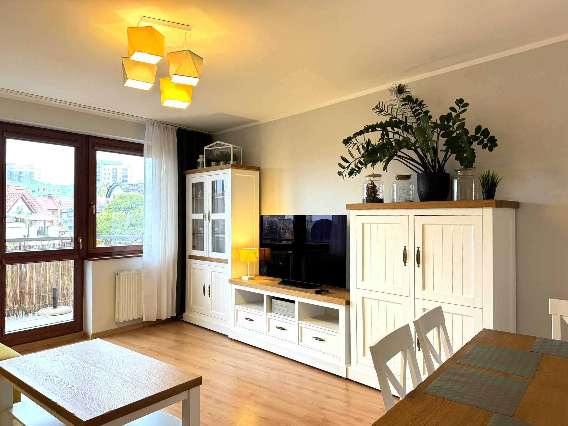 – salon z wyjściem na balkon,